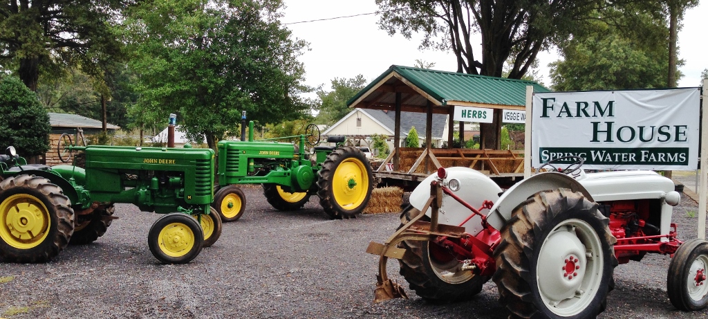 Nestled right behind the farm tractors and antique trucks is the warm and cozy Farm House of Spring Water Farms. Stop in and visit! There are always fun surprises inside; samples, more veggies, eggs, SWF BEEF, Chicken and other great foods from other vendors like Mooresville Ice Cream, Organic Life Food, 8th Generation Farm, Dixon Farm, Nash, Coddle Creek, Living Goodness, Troyer Amish Farms and others!